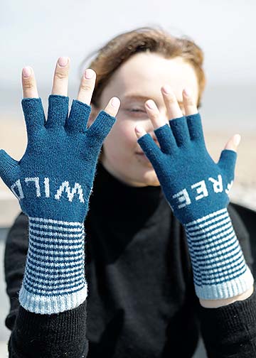 Classic gloves with a twist. This three colour design has alternating colours on the graphic wording of each hand, making for a fun, mismatched look. Made to be extra warm for those who prefer a classic glove. The striped cuff also has a contrasting coloured edge detail. Designed with timelessness in mind, these gloves are made to be worn and loved year on year. They also make thoughtful gifts.